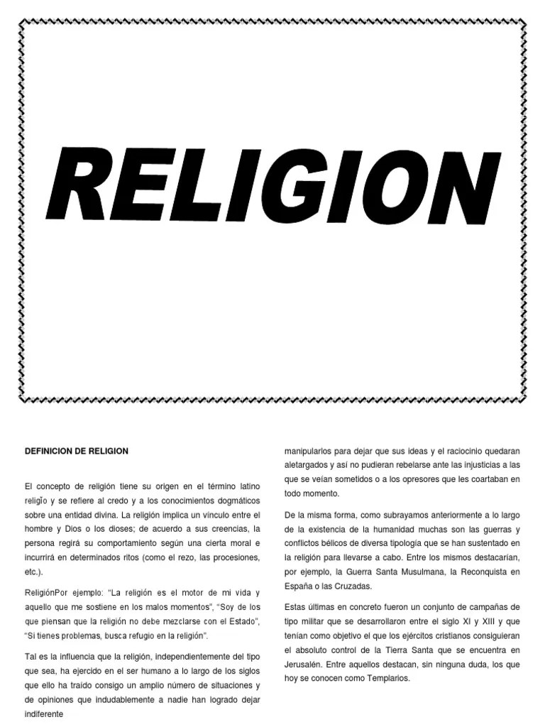 La religión es un conjunto de creencias y costumbres fundamentadas en la divinidad con la capacidad de regir la vida de las personas que la siguen. La religión es uno de los pilares más importantes en el. Una religión, a través de su texto sagrado, establece sus principios morales y decide qué está bien, qué está mal y qué objetivos persigue. La religión es un sistema de creencias, costumbres y símbolos establecidos en torno a una idea de la.. La religión es un sistema de creencias, costumbres y símbolos establecidos en torno a una idea de la.